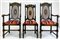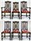 Gruppo di quattro sedie e due poltrone in rovere con schienale tra montanti a t
