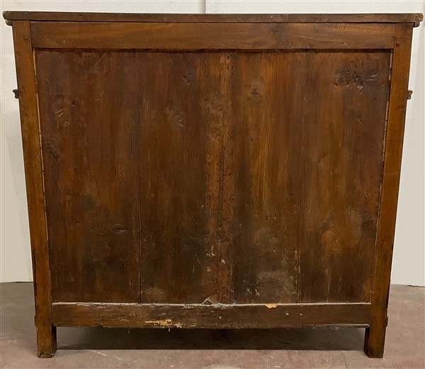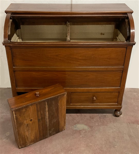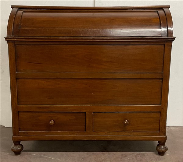 Madia con ribalta a rullo e due cassetti alla base, piedi a cipolla. Secolo XIX (cm 121x114x56) (difetti)