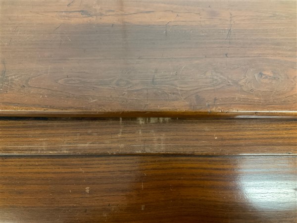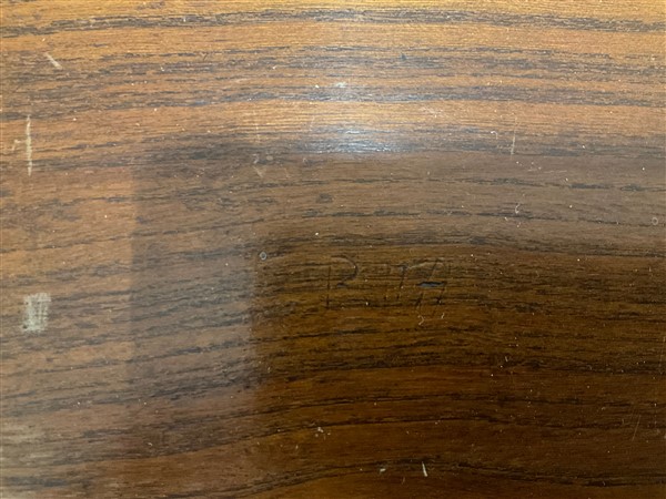 Madia con ribalta a rullo e due cassetti alla base, piedi a cipolla. Secolo XIX