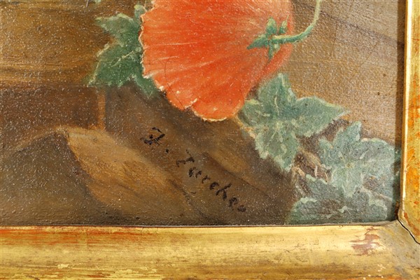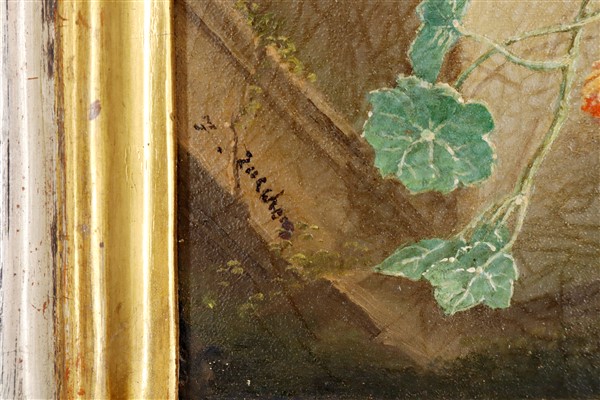 Firma indecifrata, secolo XIX coppia di "Composizioni con fiori e rovine" oli