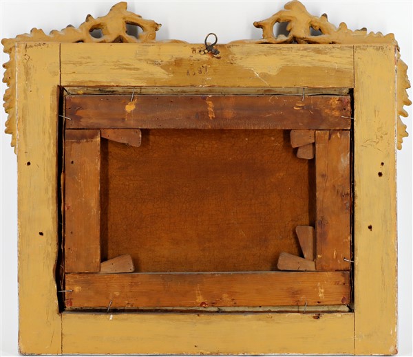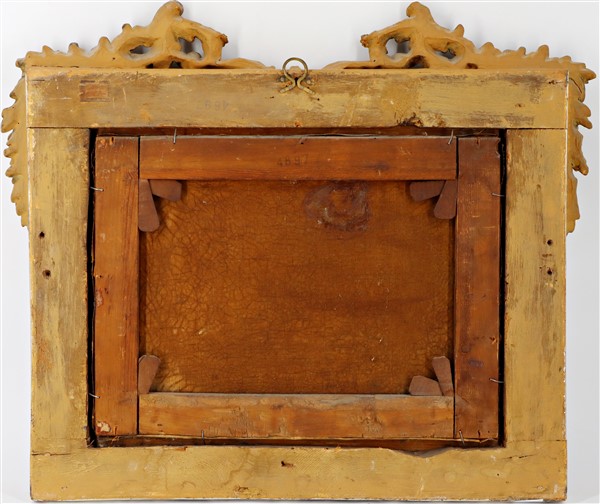 In cornice in legno intagliato, dorato e traforato (difetti)