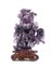 Vaso scolpito in ametista con decoro a fiori a rilievo poggiante su base in leg
