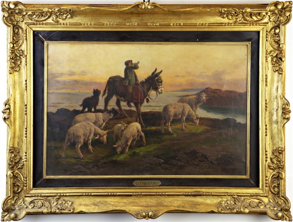 John Edmund Califano "Il richiamo del pastore" olio su tela (cm 39x57) firmato