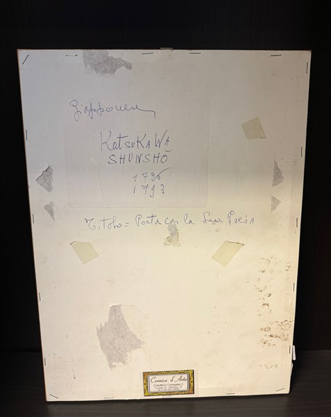 Katsukawa Shunsho, pagina da un libro xilografico raffigurante poeta e testo de
