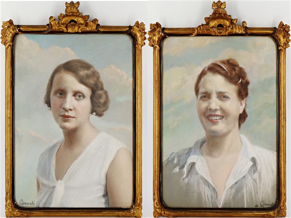 Guido Levorati Coppia di ritratti femminilipastelli colarati su carta (cm 46x30)