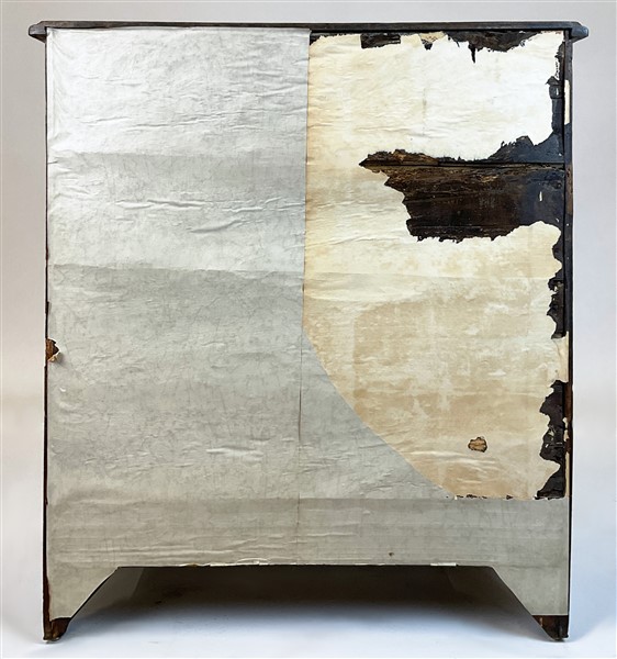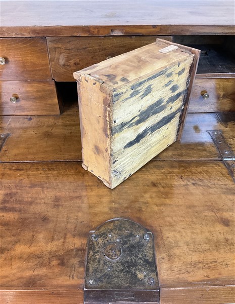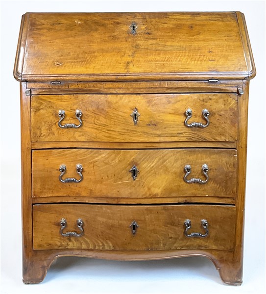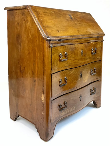 Ribalta in noce con fronte mosso a tre cassetti e calatoia che rivela cinque ti