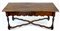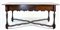 Tavolo in noce con gambe tornite a rocchetto raccordate da traverse mistilinee