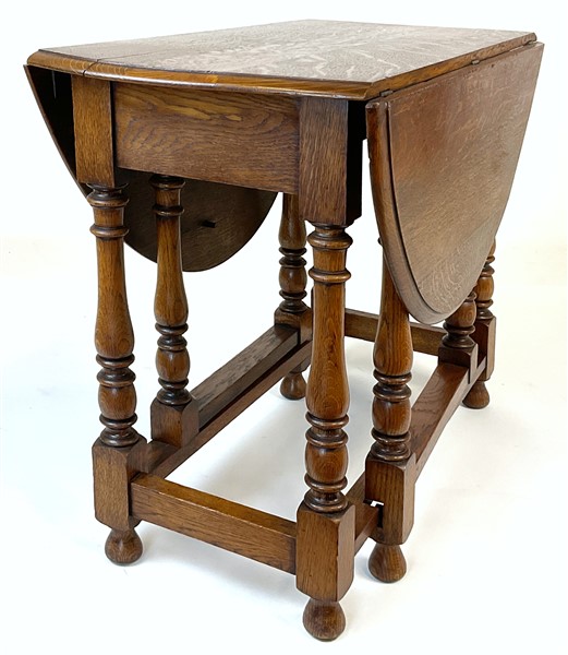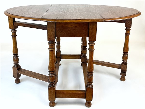 Lotto 1996 | Tavolo a bandelle in rovere con gambe tornite riunite da traverse (cm chiuso 92