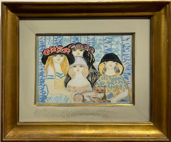 Felicita Frai "Le amiche e il gattino" tempera e acquerello su carta intelata (c