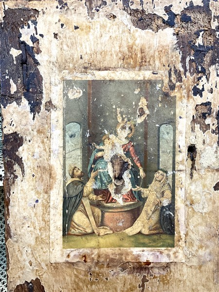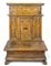 Antico inginocchiatoio in noce e radica di noce ad un'anta ed un cassetto nella