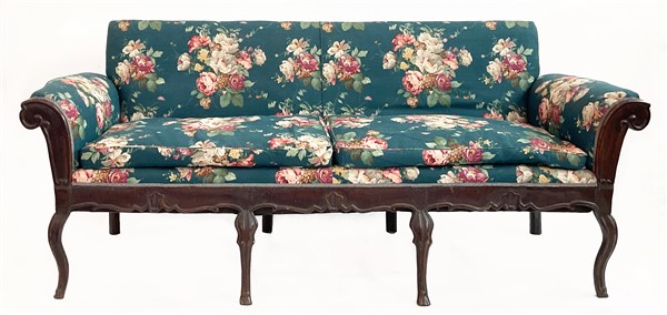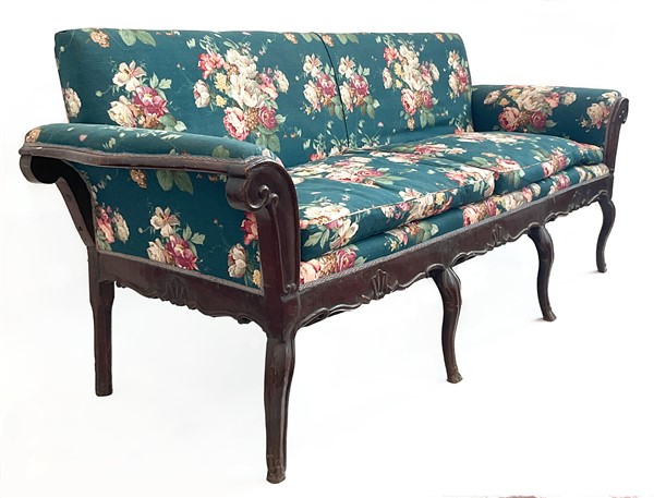 Lotto 2009 | Divano a tre posti con gambe e braccioli mossi con bordure a volute. Secolo XVI