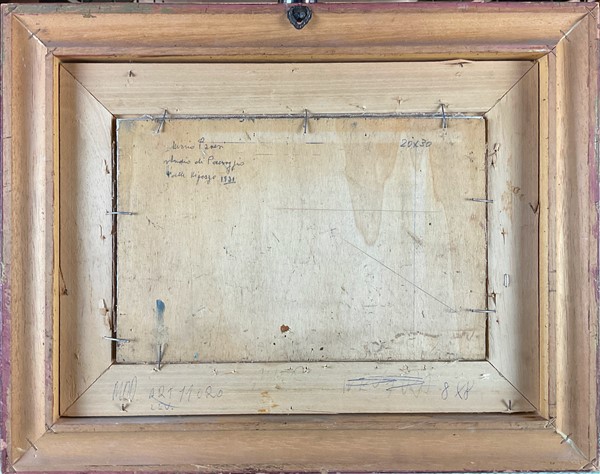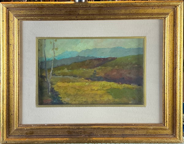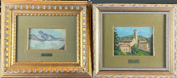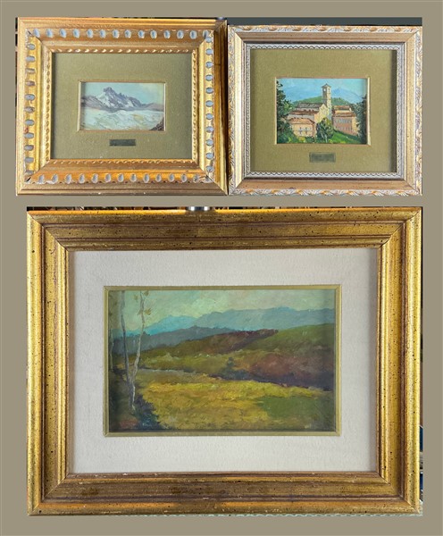 Lotto composto da tre dipinti ad olio su diversi supporti raffiguranti "Paesagg