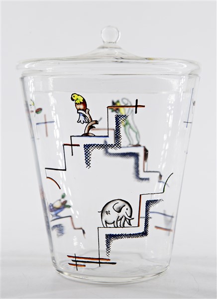 Manifatture diverse Compostiera in vetro cristallo decorato a smalto con motivi