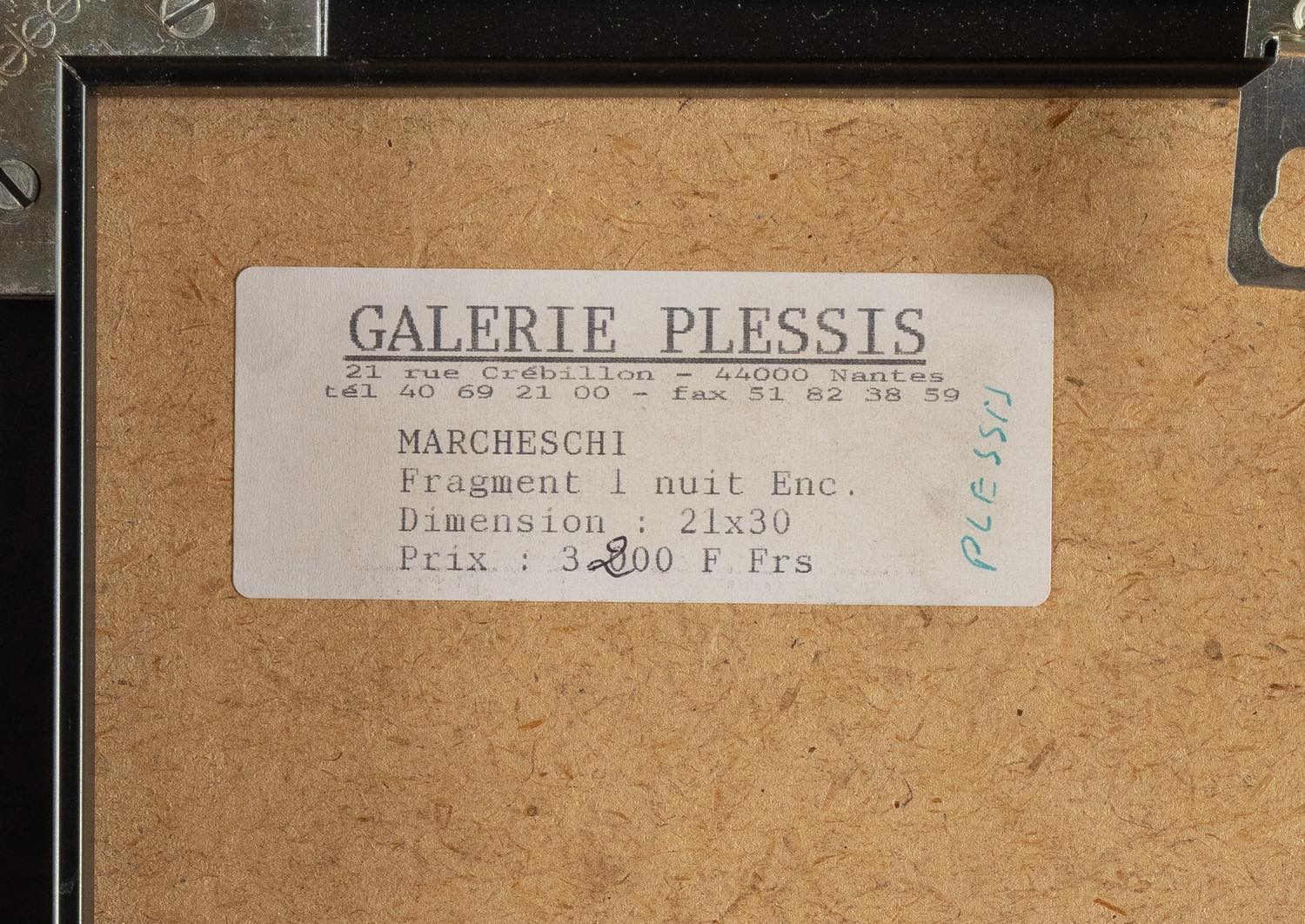 Jean-Paul Marcheschi (Bastia 1951), “Fragment 1 nuit Enc.”.Tecnica mista su cartoncino, firmato in basso a destra, reca al retro etichetta della Galerie Plessis - Nantes, con autore, titolo e dimensioni, H cm 30x21 - Notes: Provenienza: Galerie Plessis – Nantes.