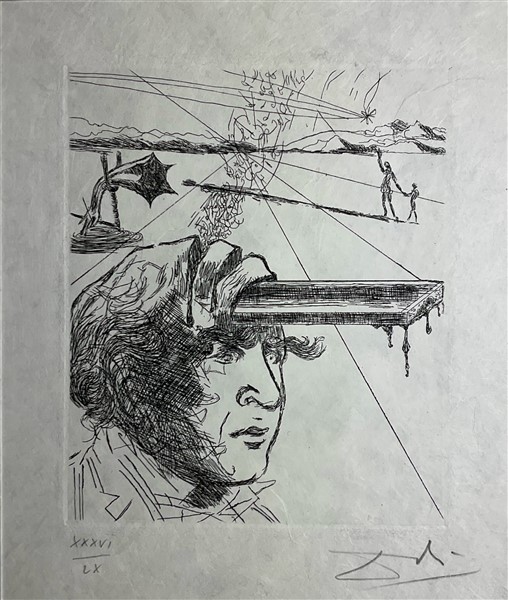Salvador Dalì "Thomas Edison" 1967 acquaforte su carta giappone (lastra cm 15x12
