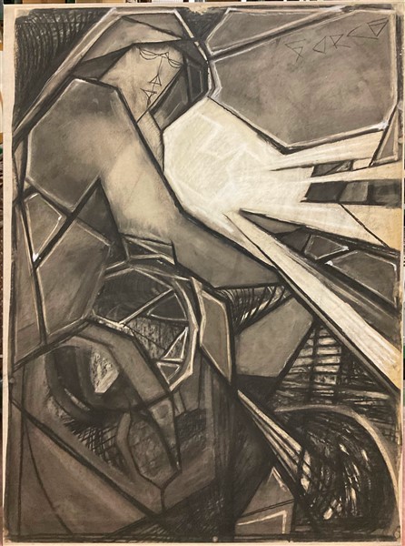 Ignoto "Composizione" carboncino su carta intelata