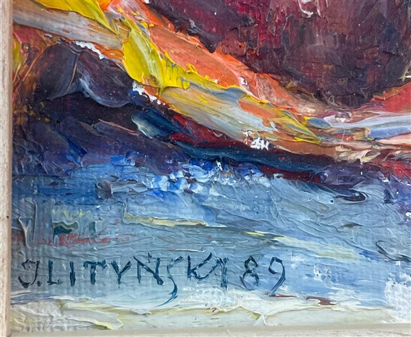 Janusz Litynski "Senza titolo" 1989 olio su cartone telato cm 14,5x17 firmato e