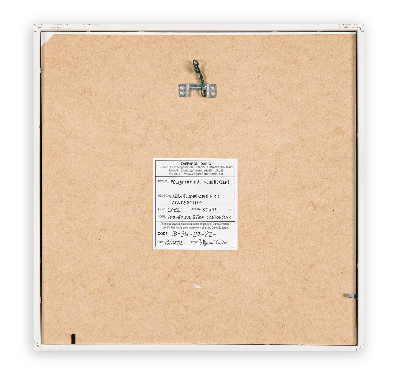 Etichetta dell'Artista al retro