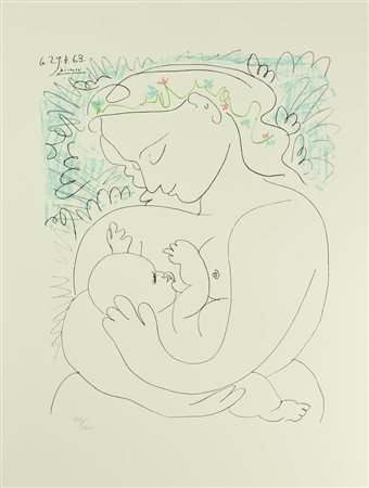 D'apres Pablo Picasso MATERNITA' foto-litografia su carta, cm 66x50; es....