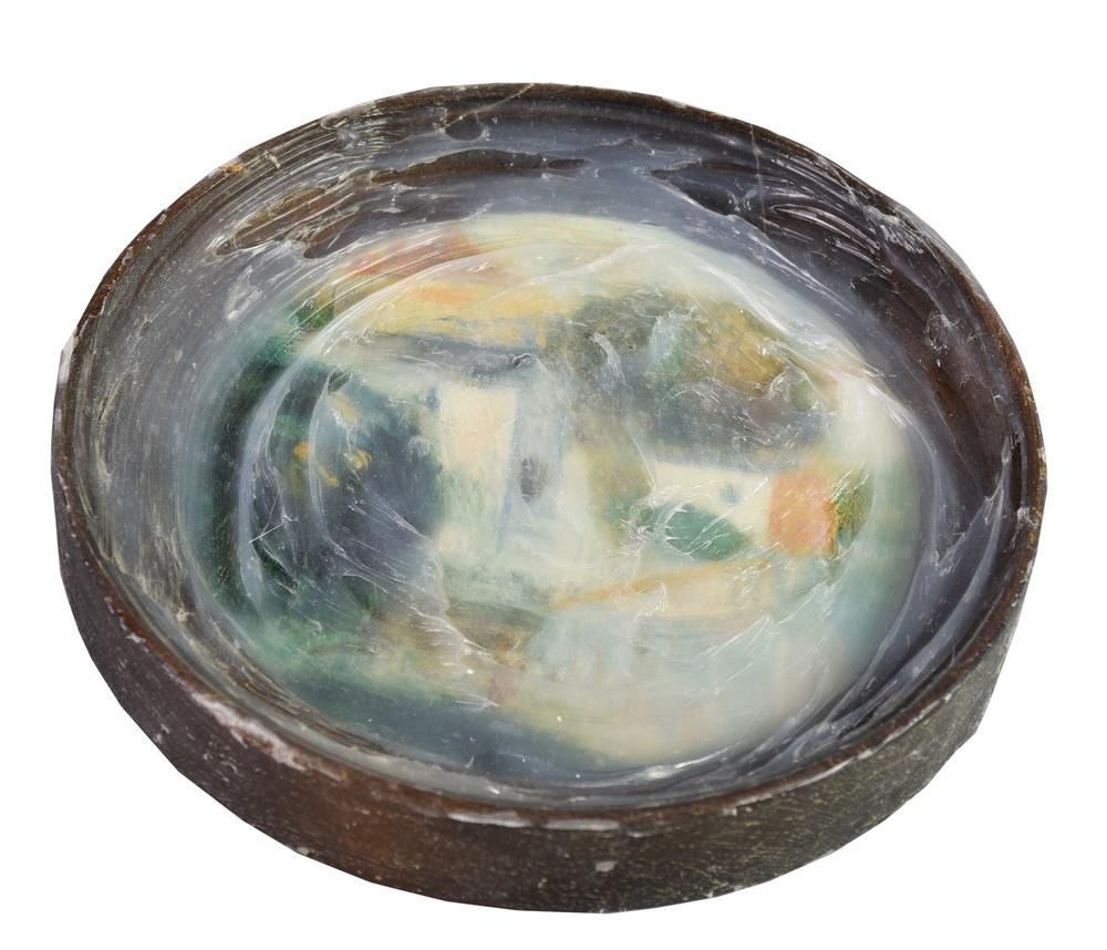 tecnica mista e silicone su cartone e legno, diam cm 15