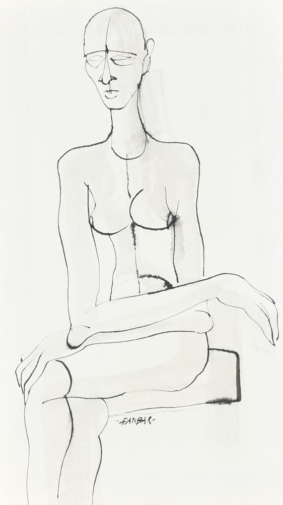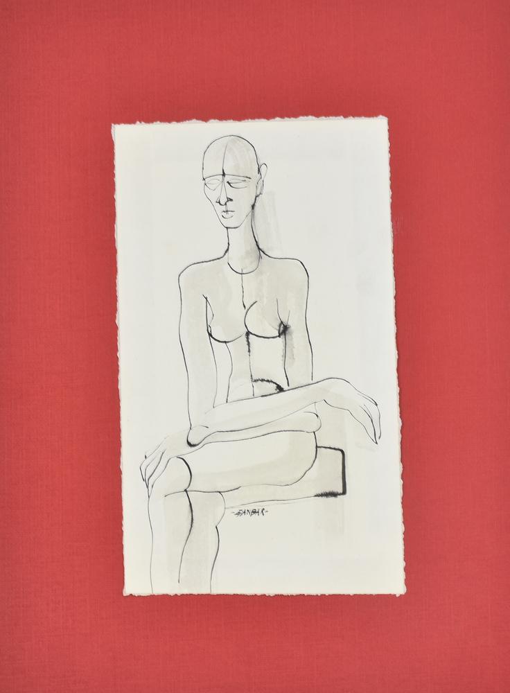 GIANBAR (Gianni Baretta) NUDO SEDUTO china acquerellata su carta, cm 37,5x22...