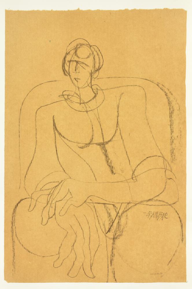 GIANBAR (Gianni Baretta) LA MADRE matita su cartoncino, cm 36,5x24,5 firma