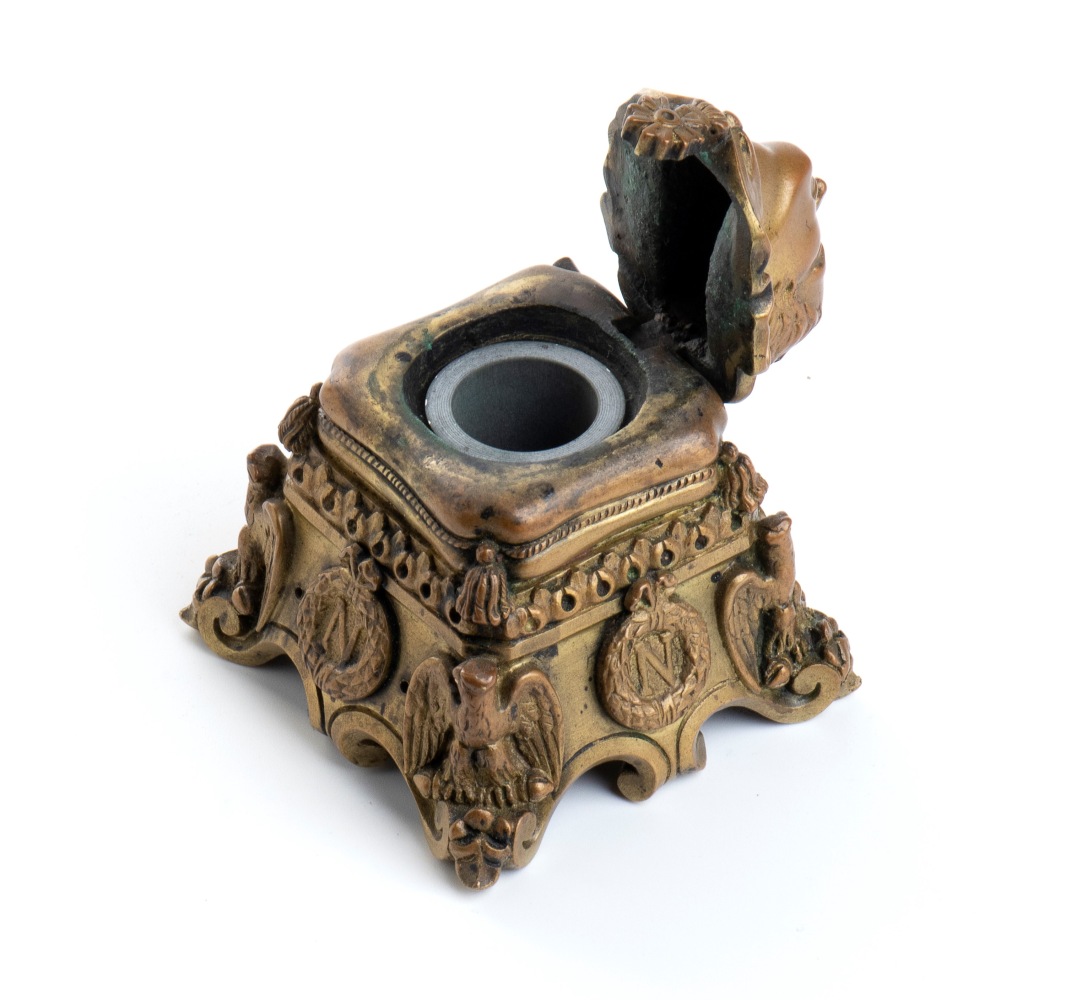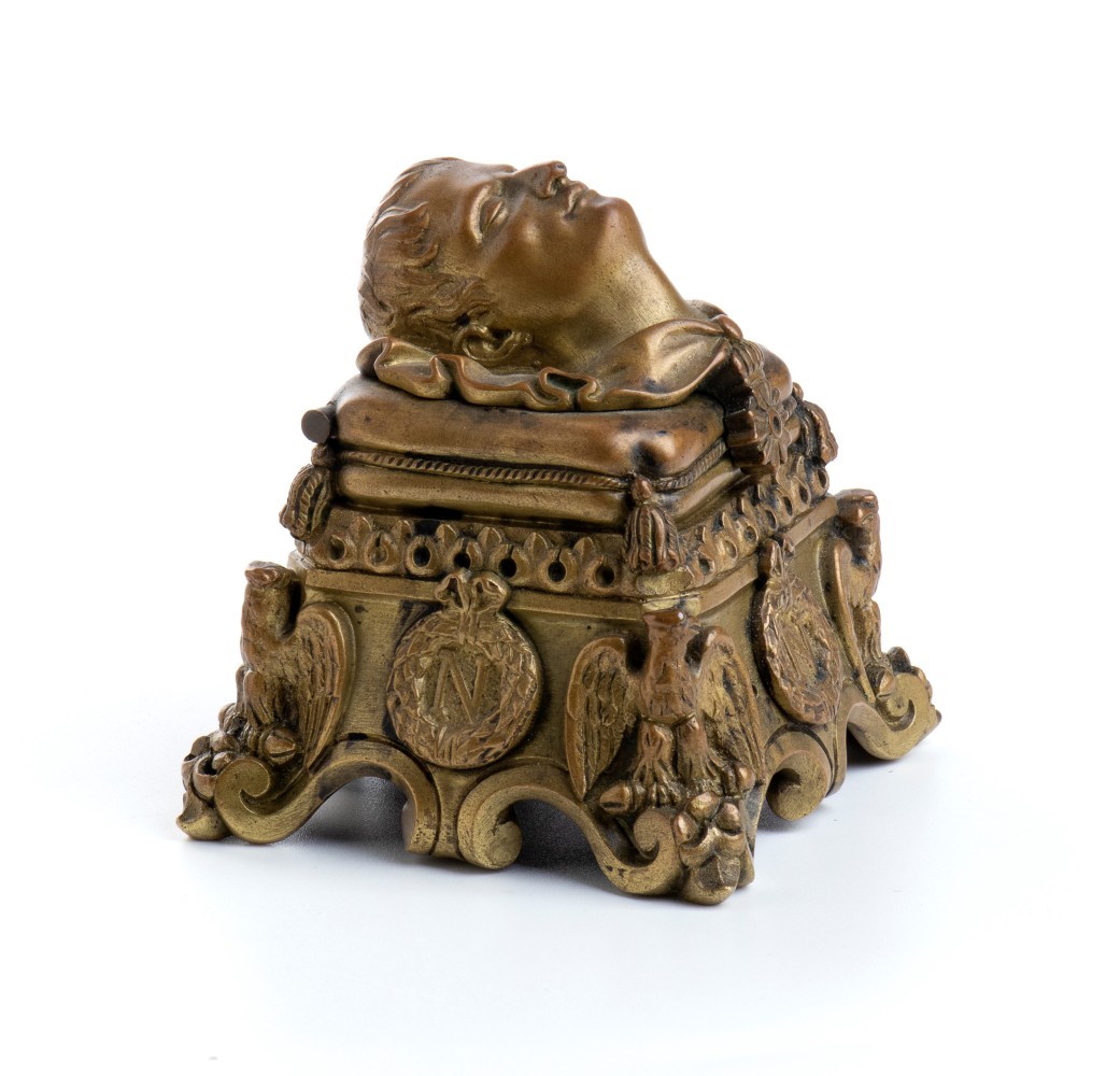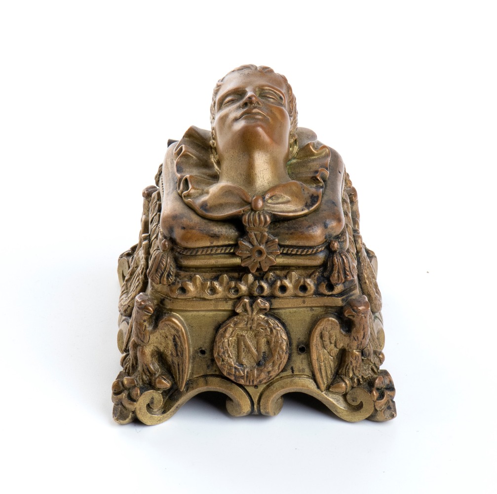 calamaio con maschera funebre dell'imperatore in bronzo metà XIX