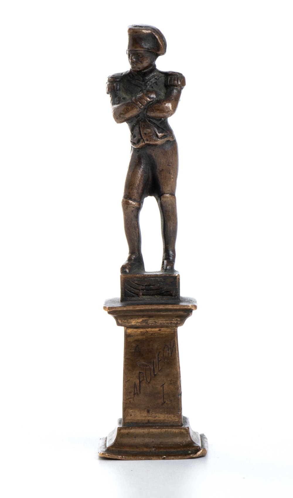 piccola statua dell'imperatore in bronzo su colonna h 11,5 cm