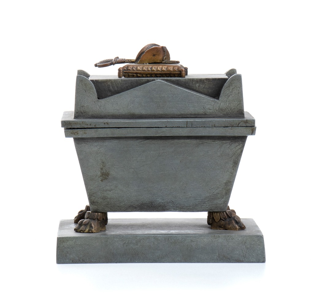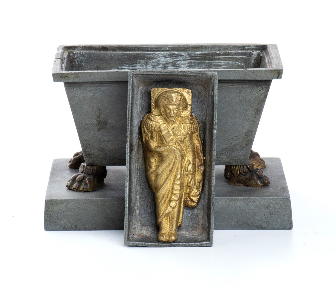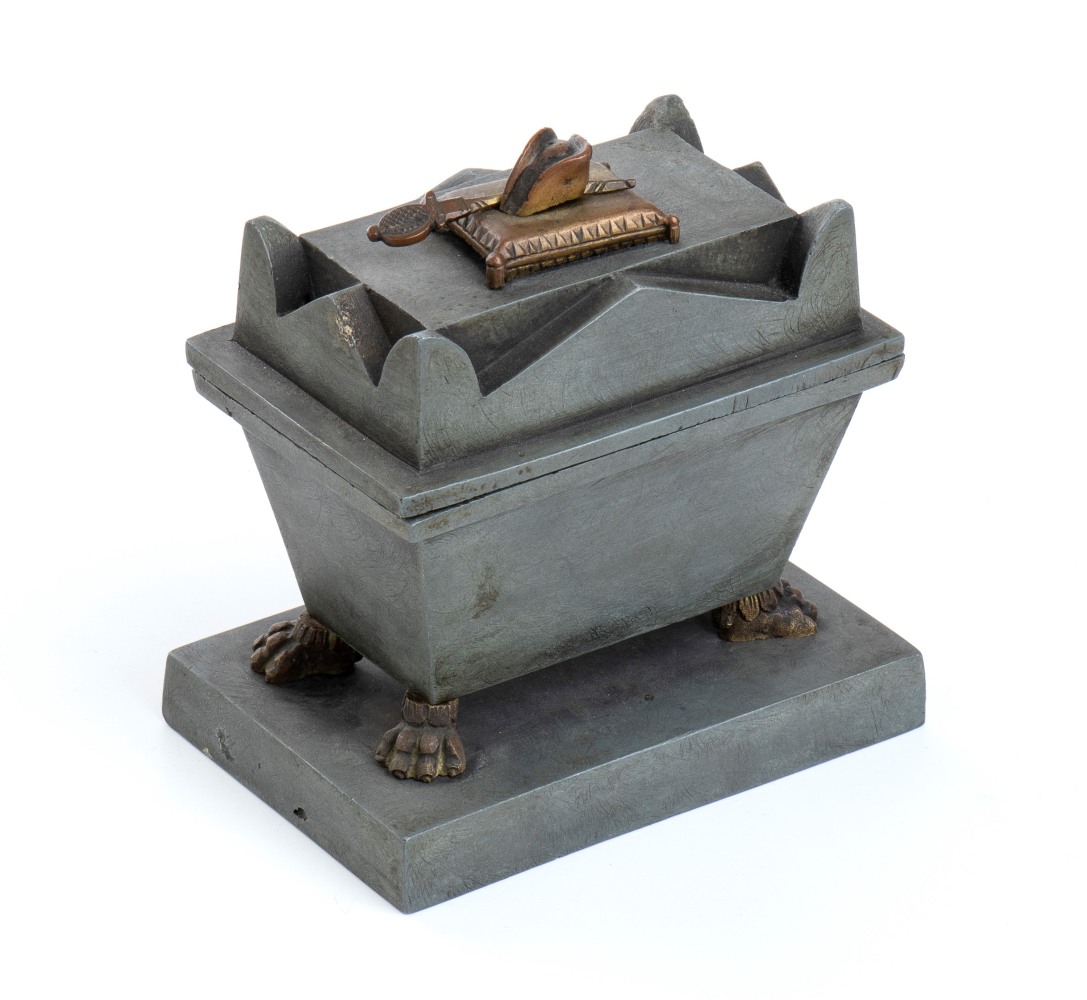 antico calamaio in metallo a forma del sarcofago imperiale