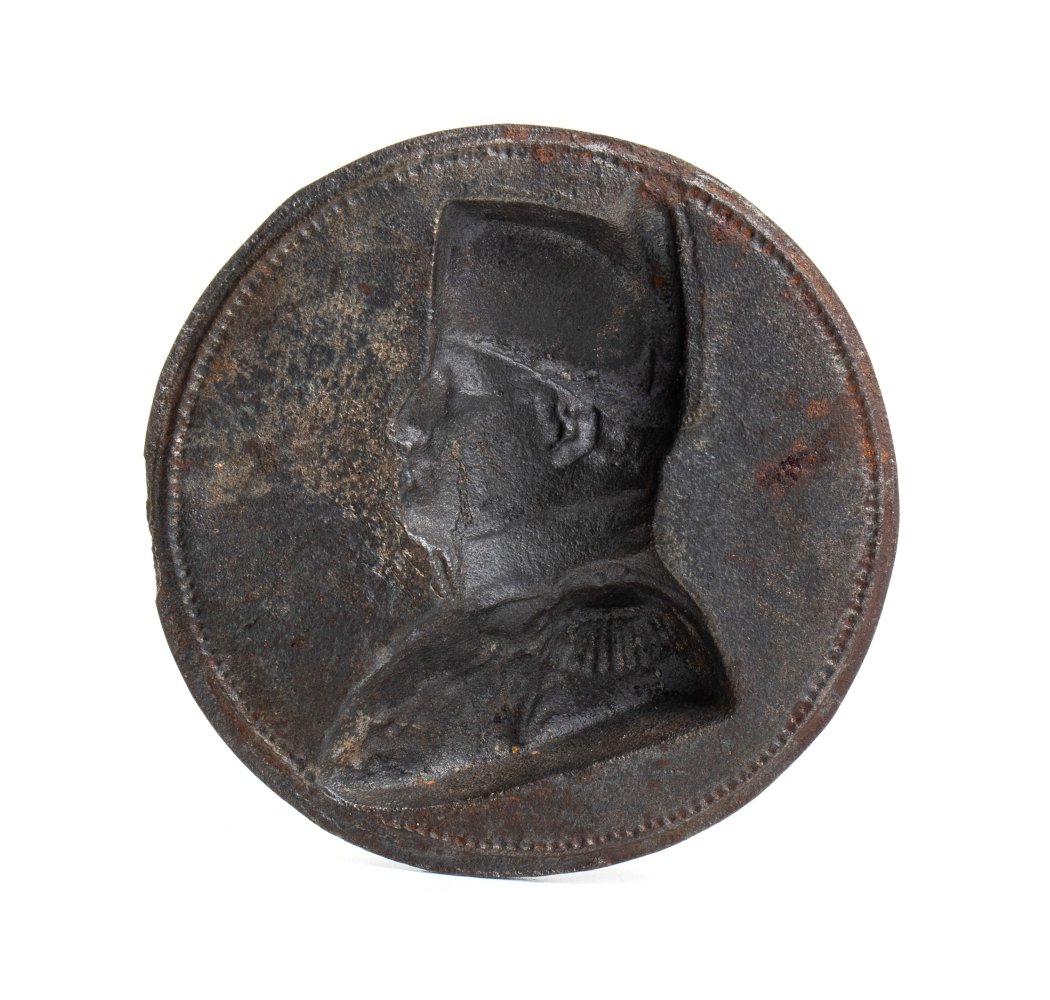 Placca in metallo con mezzobusto dell'Imperatore XX secolo Diametro: 11 cm