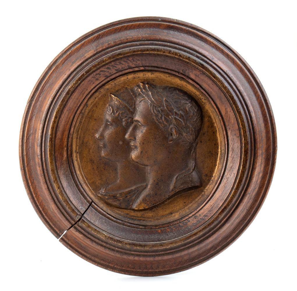 Medaglione nuziale in cornice lignea diametro: 21,5 cm Raffigurante...