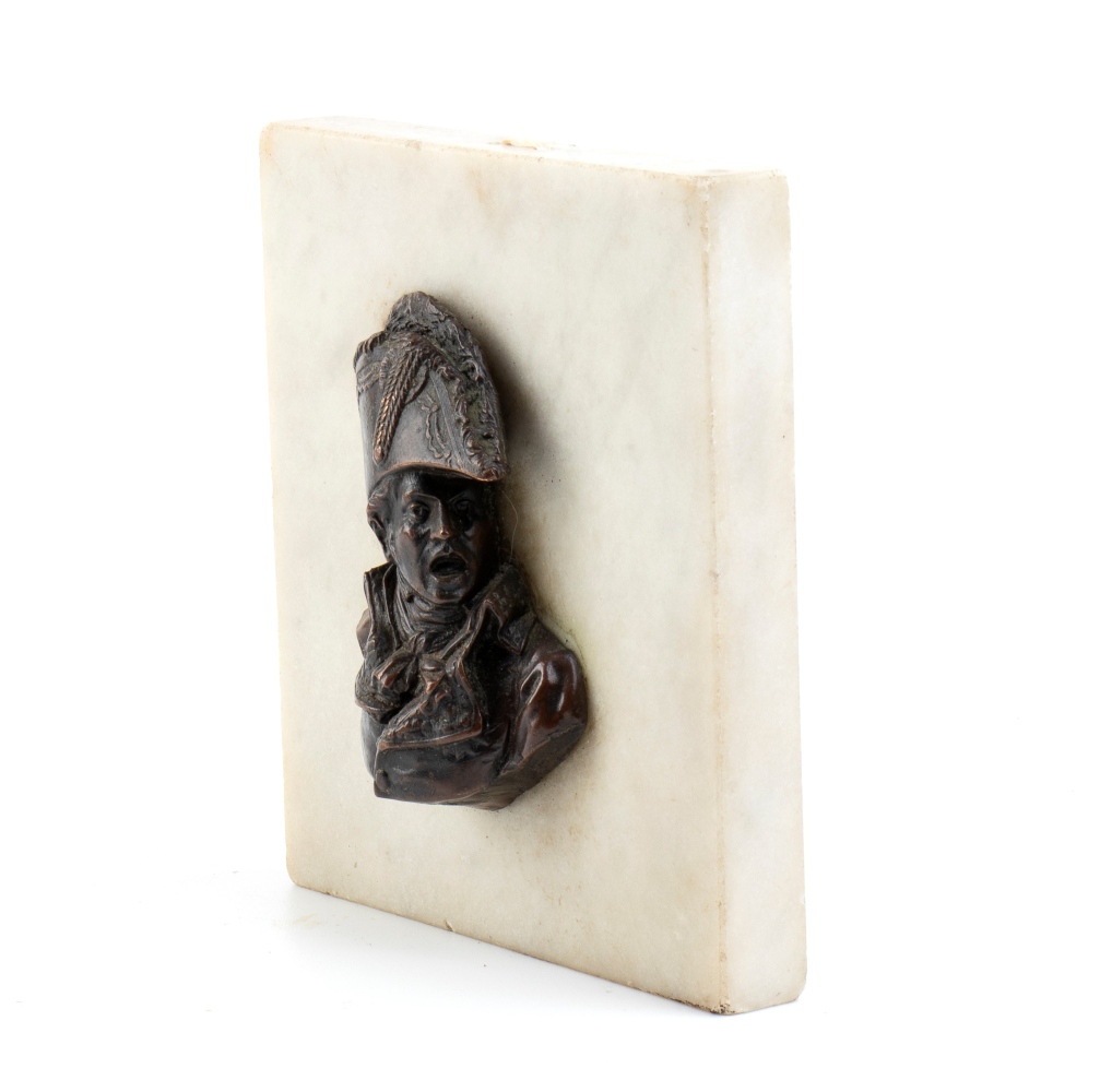 Fermacarte in marmo bianco con busto in bronzo del Maresciallo Nej 10x10