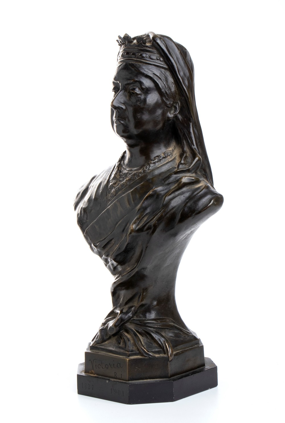 busto della regina Vittoria in bronzo su base lignea 37 cm inciso data di...