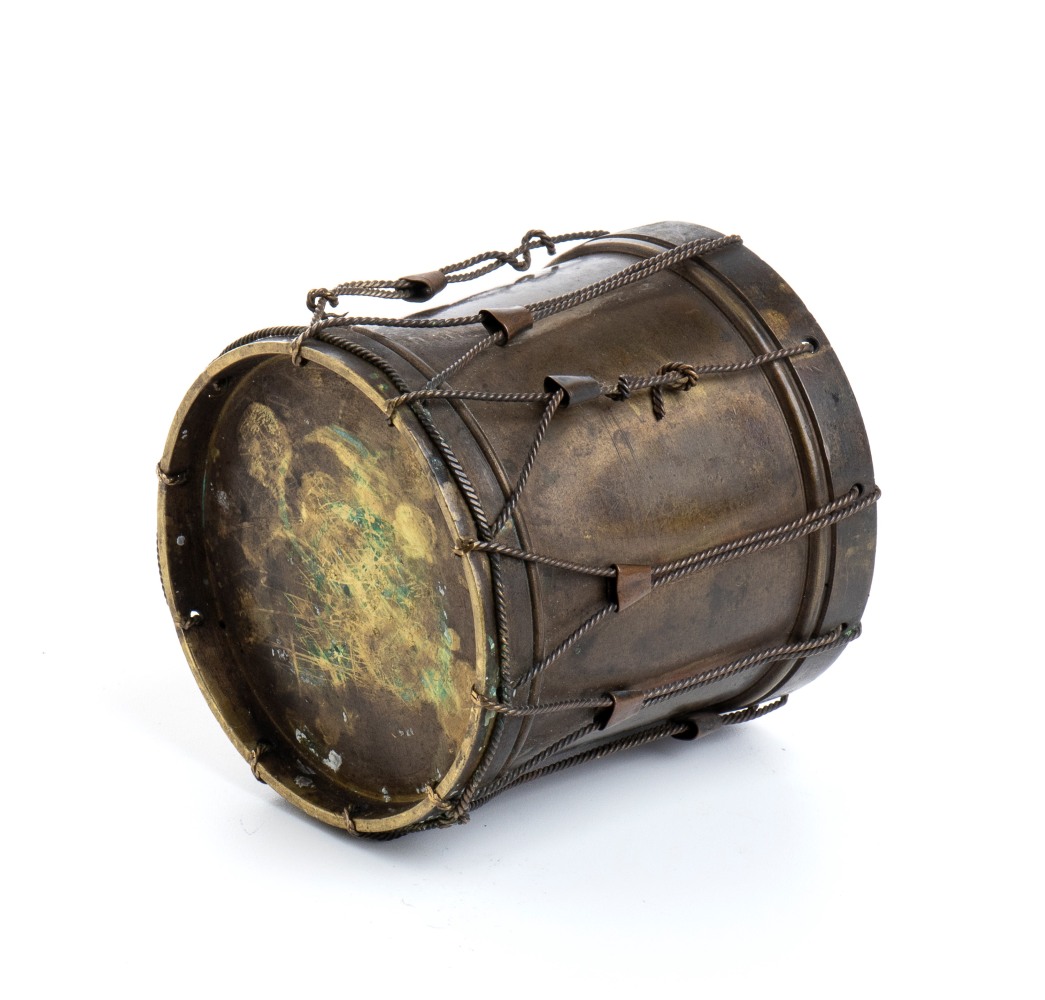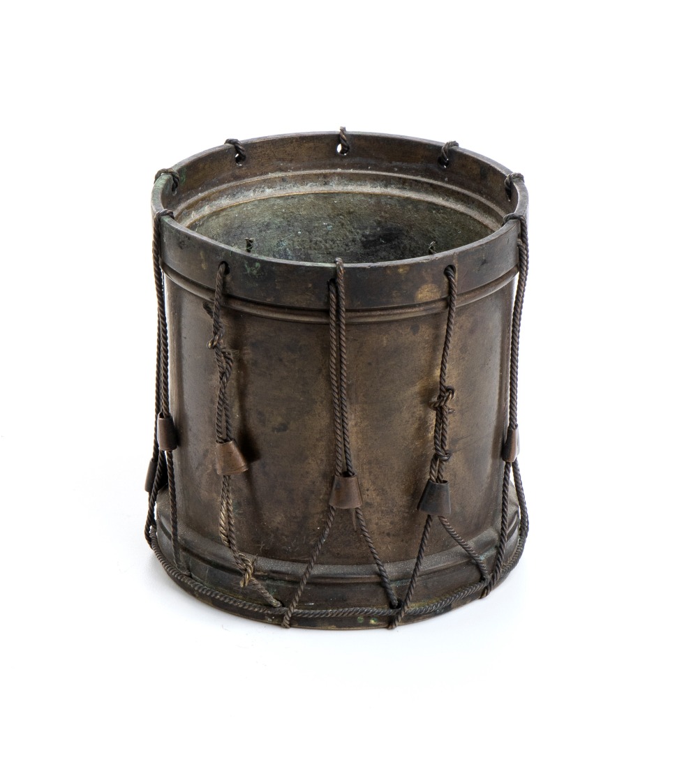 portapenne a forma di tamburo in ottone metà XIX