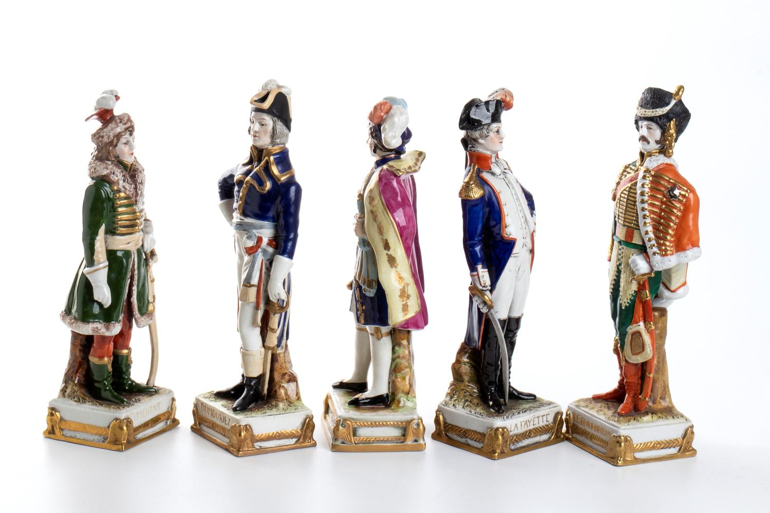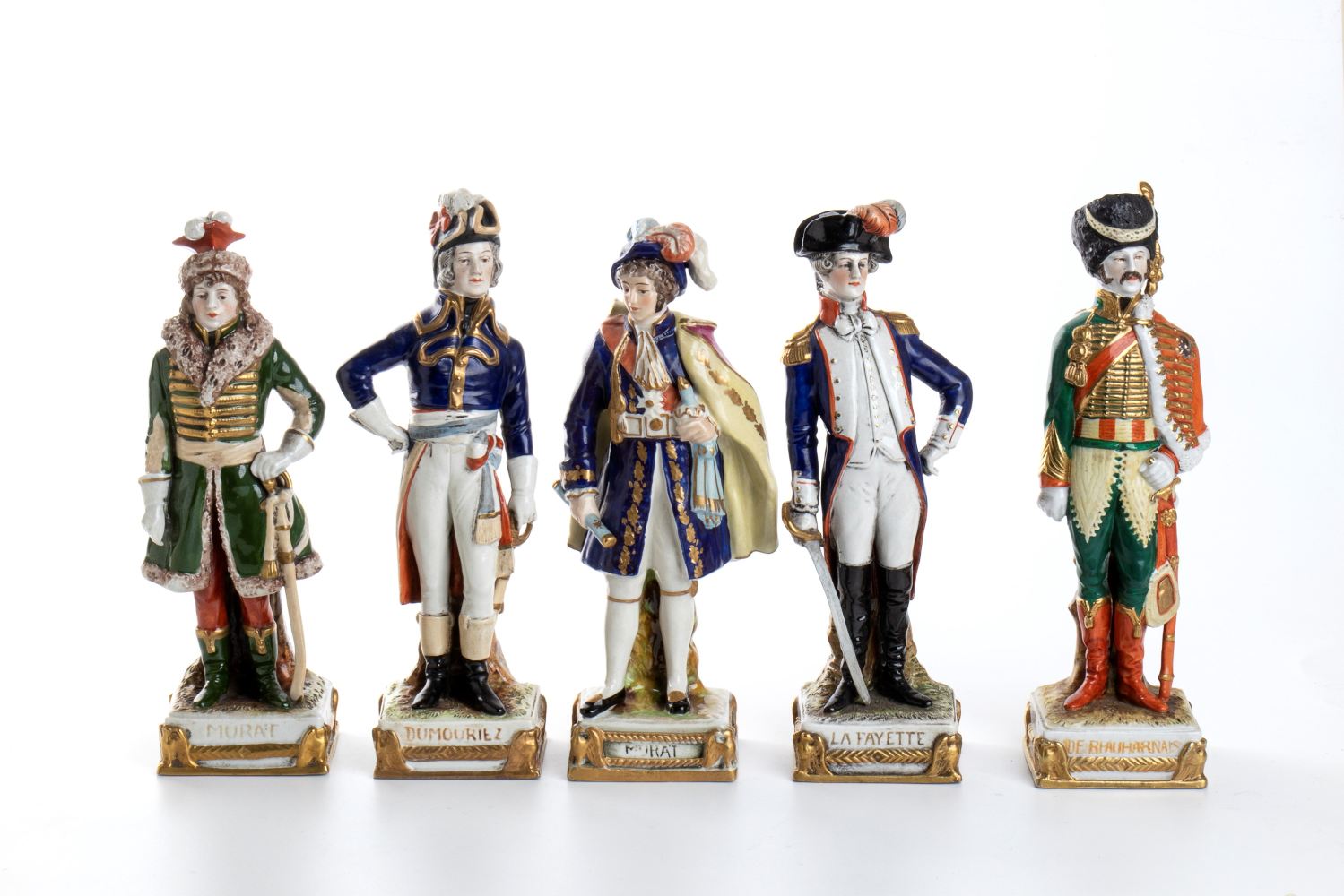 Gruppo di cinque statue in porcellana h:24 cm Raffiguranti La Fayette,...