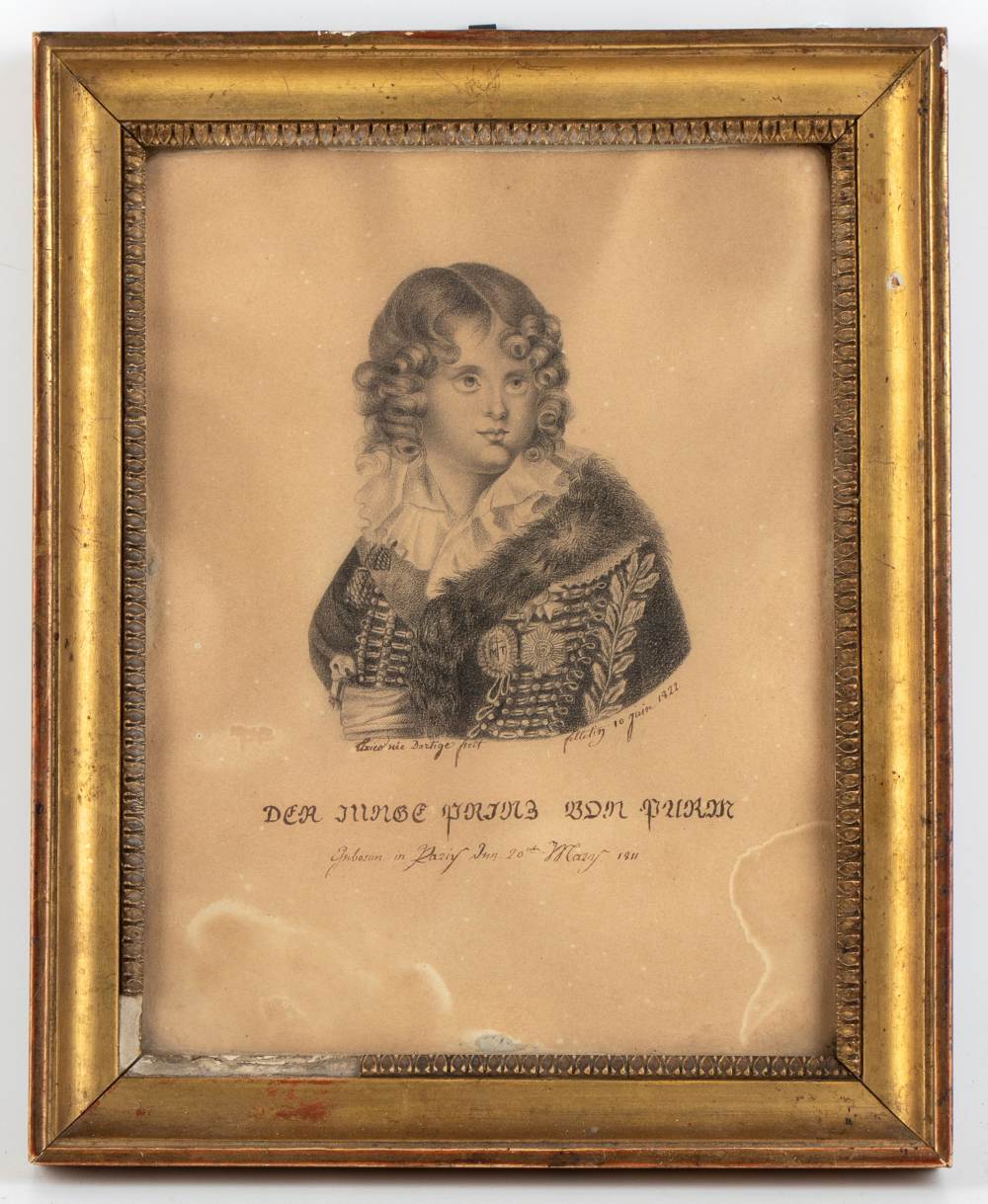 Stampa raffigurante l'Aiglon 27x22 in cornice dorata con lievi difetti.