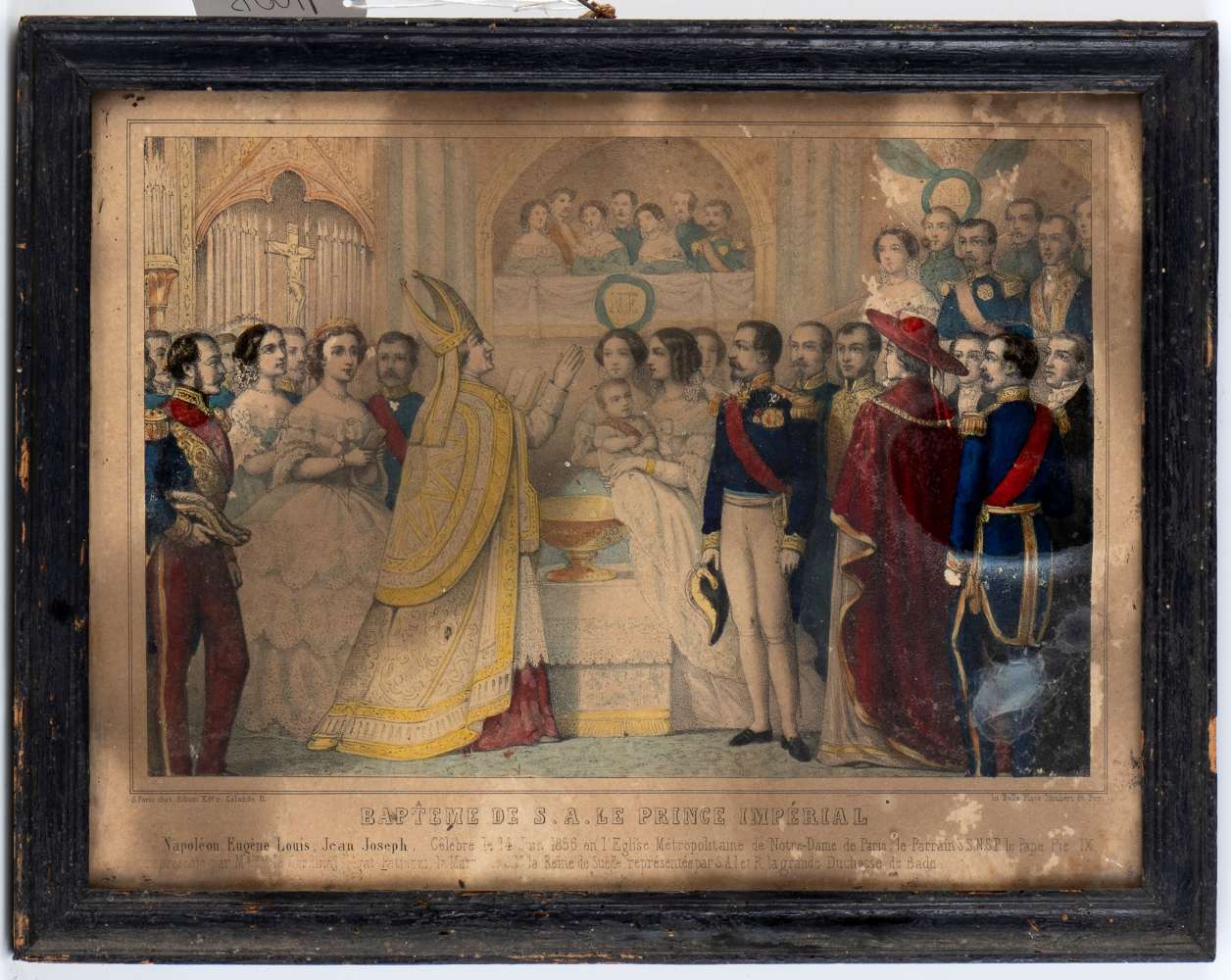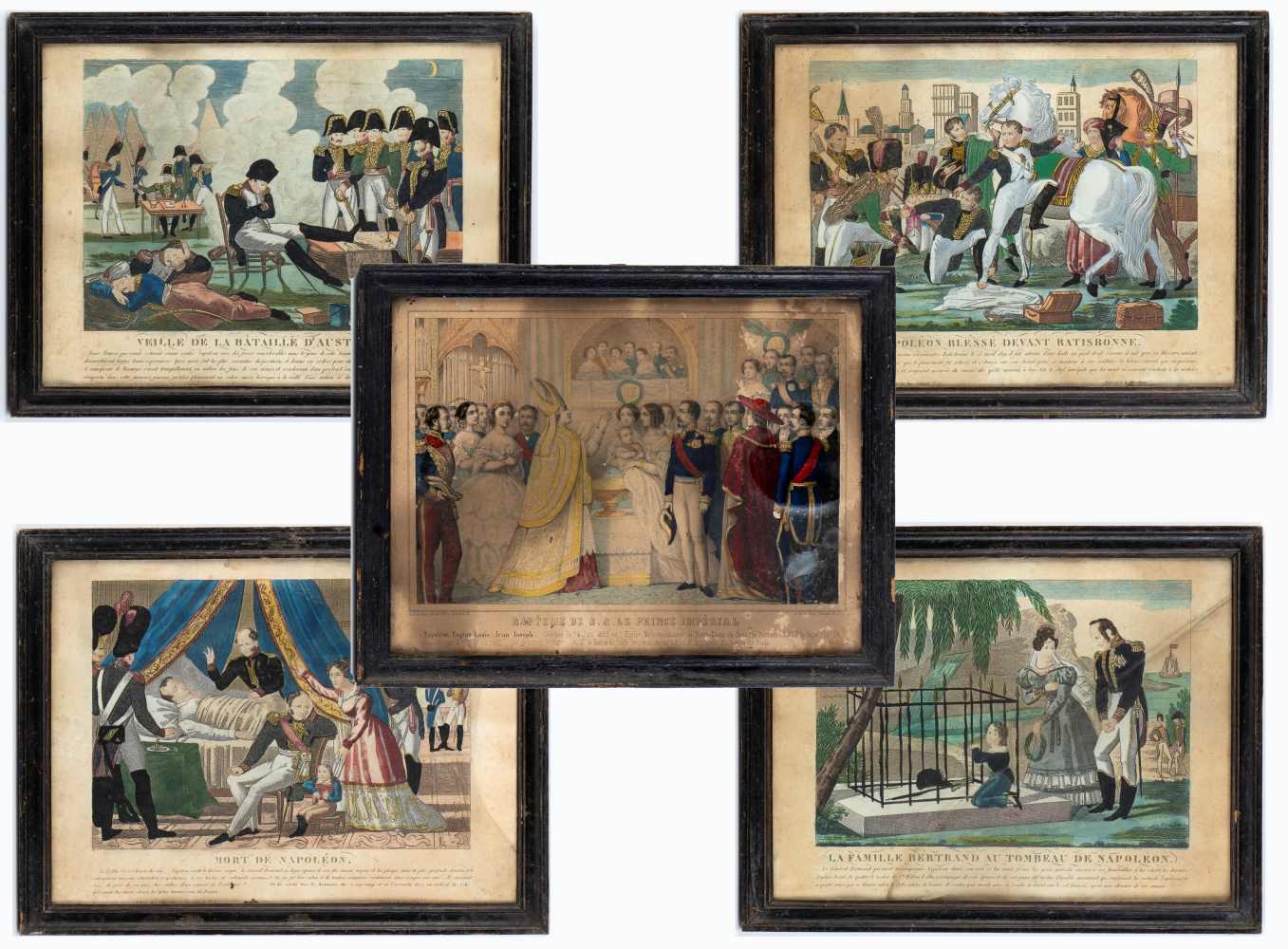 raffiguranti La famiglia Bertrand sulla tomba di Napoleone; La morte di Napoleone; Napoleone Ferito a Ratisbona; Viglia della battaglia di Austerlitz; Battesimo dell'erede di Napoleone III. Acune stampe presentano rottura del vetro.