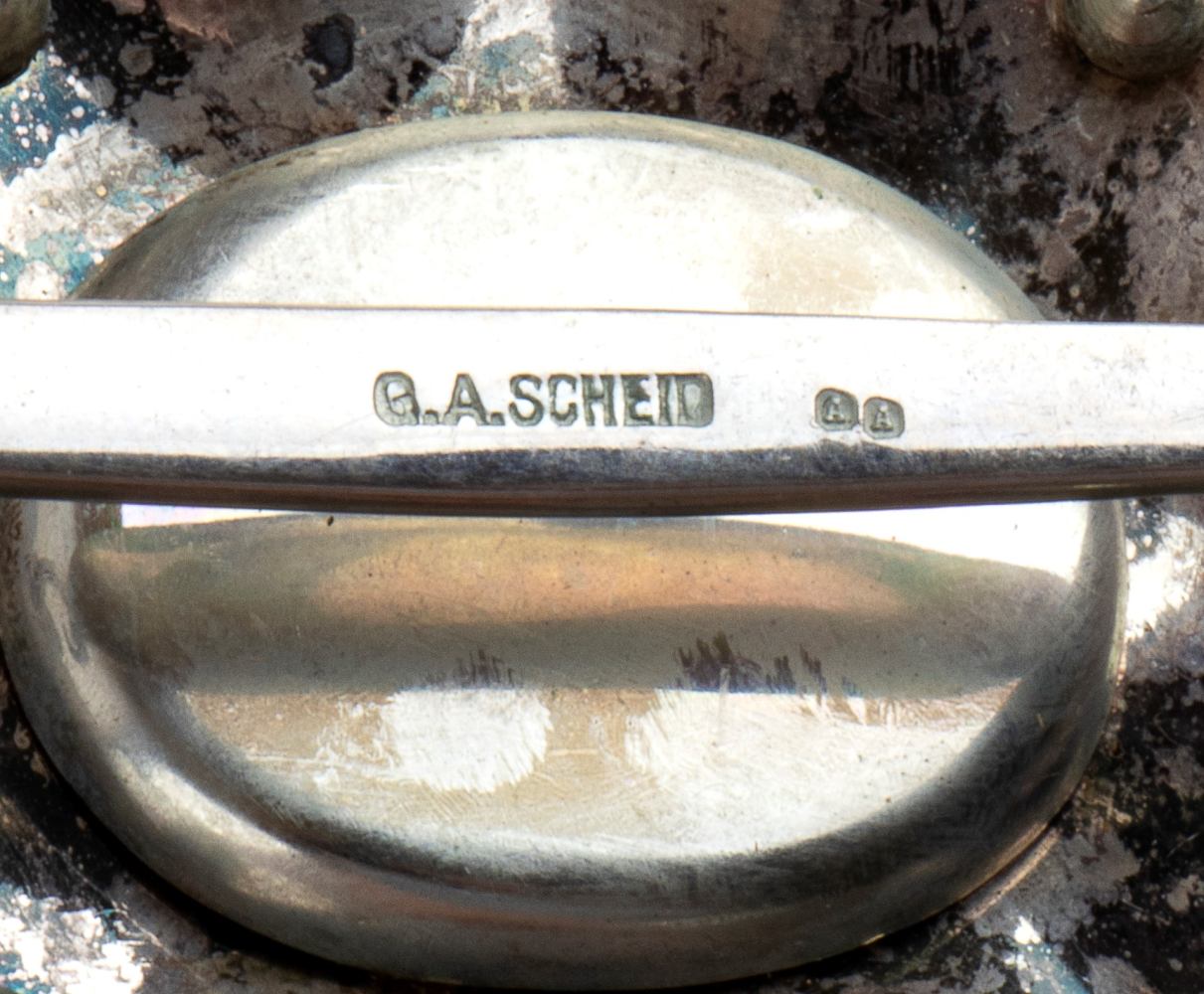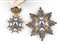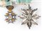 Insegna di gran Croce, placca in argento gettato, traforato e cesellato con applicata croce in oro e smalti a rivetti, vesti del santo arancio, fattura tedesca,G.A. Scheid, pendente con fascia in seta marezzata, difetti allo smalto del pendente, con diploma di concessione al Grande Ammiraglio Thaon de Revel
