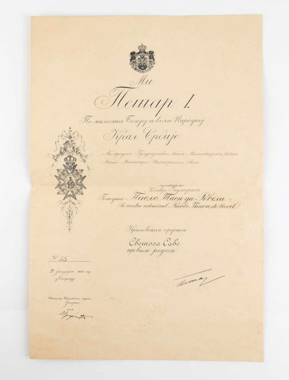 Serbia, Ordine di S. Saba, Gran Croce e diploma prima metà XX sec.