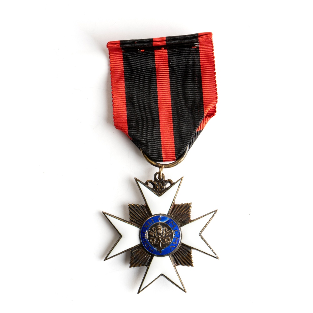 ORDINE DI S. SILVESTRO PAPA, CAVALIERE metà XX sec. argento e smalti, nastro...