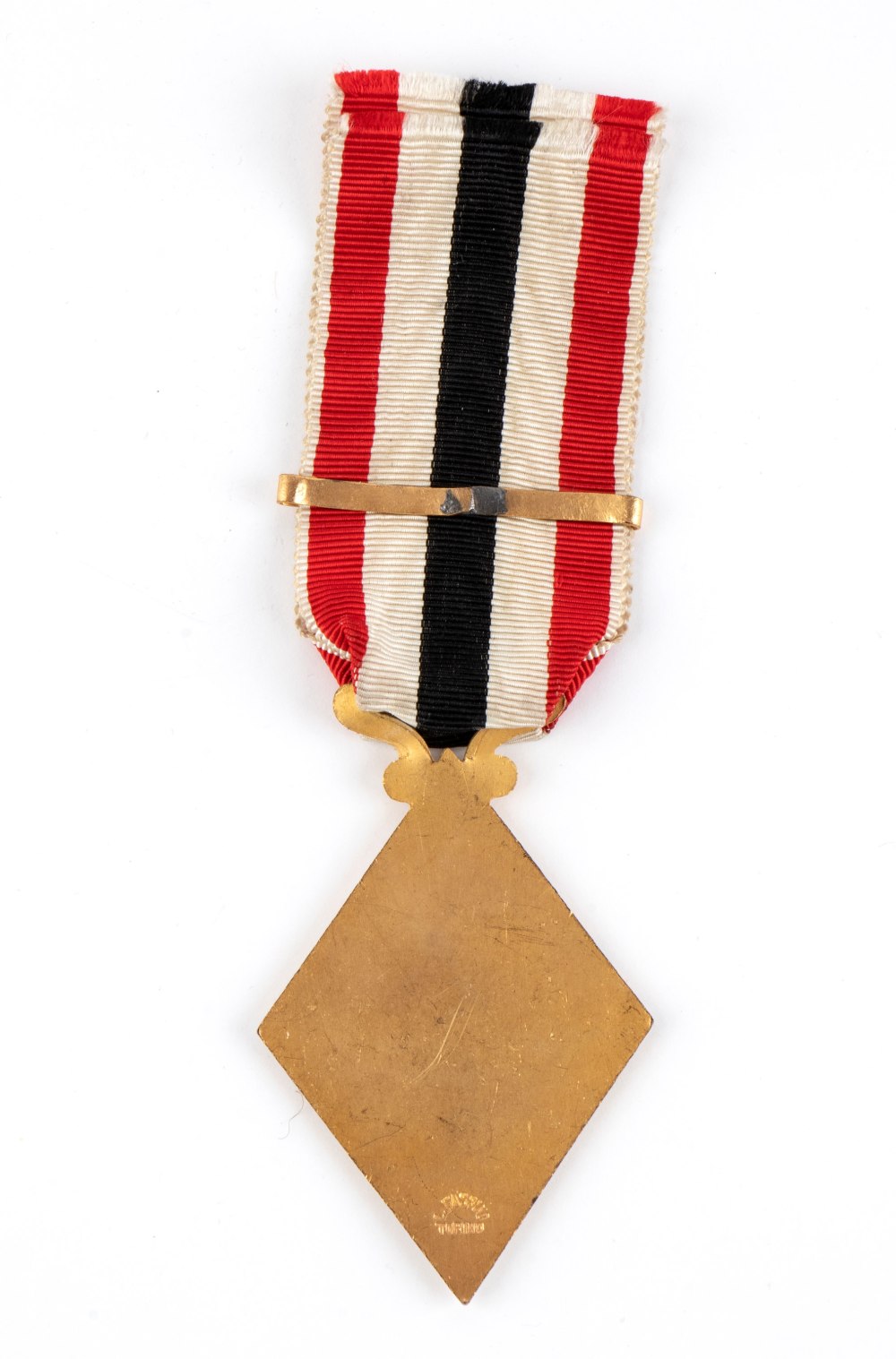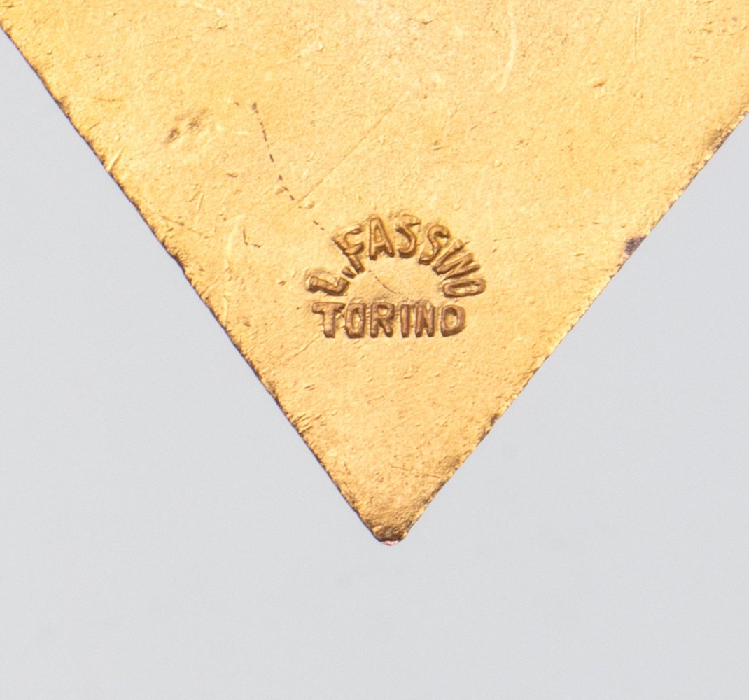 In metallo dorato con fascetta recante scudo Savoia, marcata Fassino, Torino, in ottimo stato