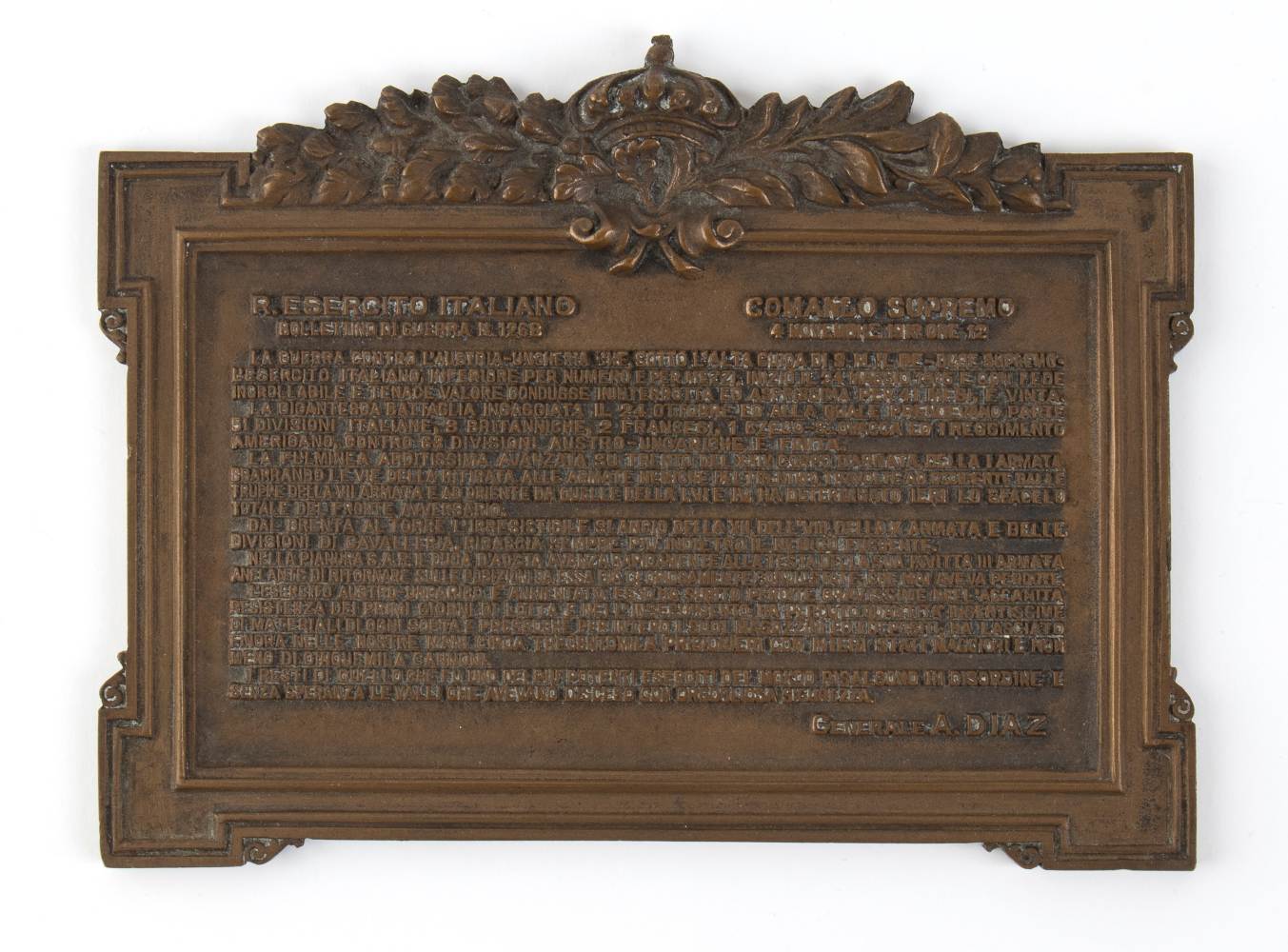 Placca in bronzo 16,5x12 Bollettino della vittoria di Armando Diaz. Ottime...