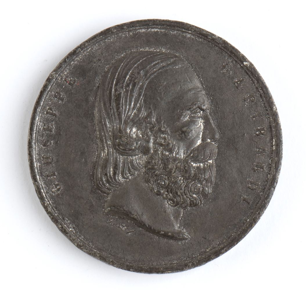 Medaglia raffigurante Giuseppe Garibaldi In lega di zinco argentato.