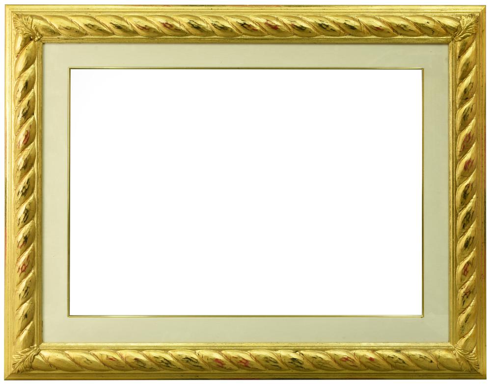 Lotto 2 | CORNICE IN LEGNO dorata e con decoro, completa di vetro e passepartout cm...