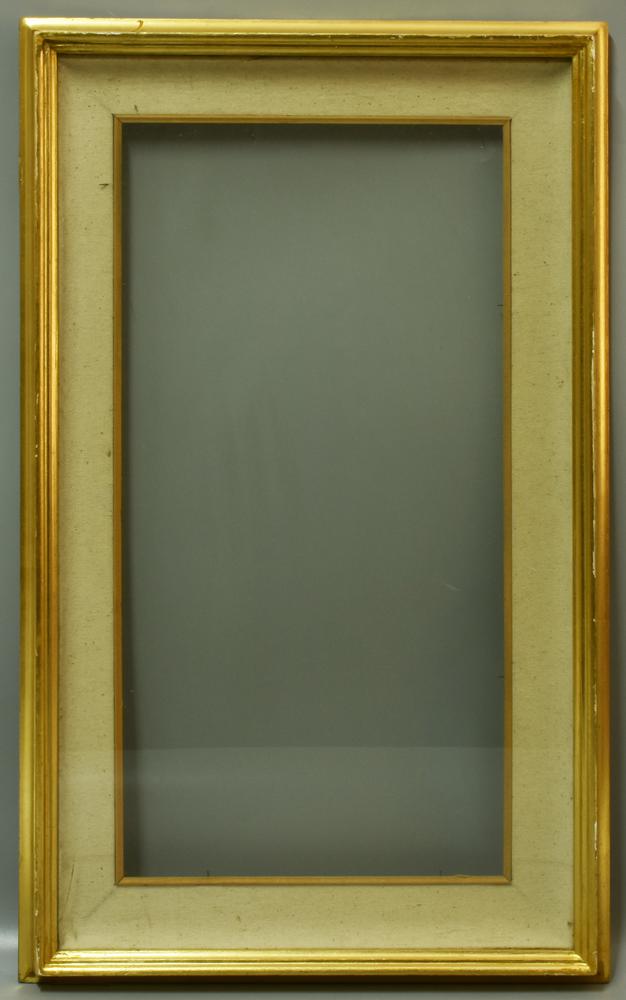Lotto 44 | CORNICE IN LEGNO dorata, completa di vetro e passepartout cm 46,5x76,5, luce...