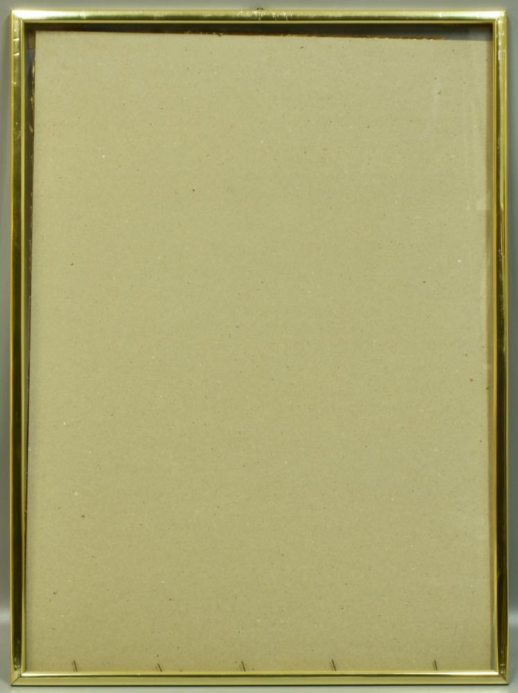 Lotto 67 | CORNICE IN METALLO dorata, completa di vetro cm 72x52, luce cm 69x49 Graffi e...