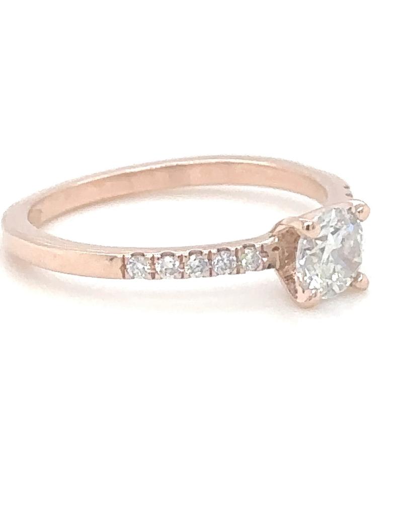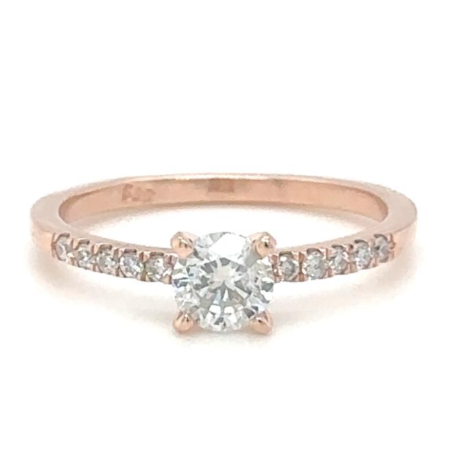 ANELLO IN ORO ROSSO 14K - 2.280 GR PIETRA CENTRALE BRILLANTE DA 0.61 COLORE G PUREZZA SI1 12 + BRILLANTI PER 0.12 CT TAGLIA 7.5 CERTIFICATO GEMMOLOGICO MAROZ DIAMONDS LTD MEMBRO ISRAEL DIAMOND EXCHANGE - RNG31202