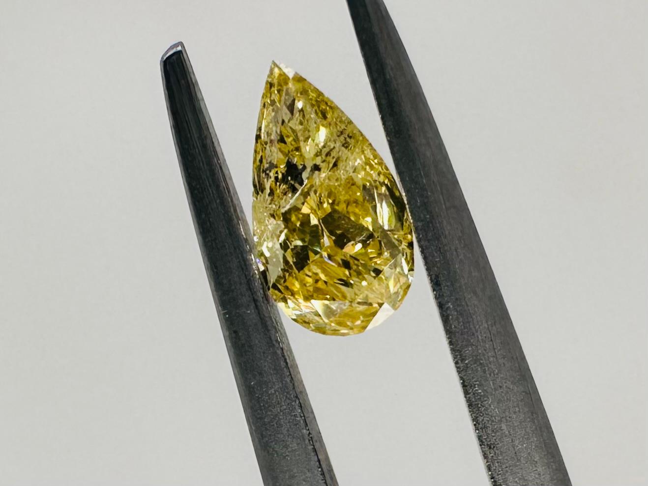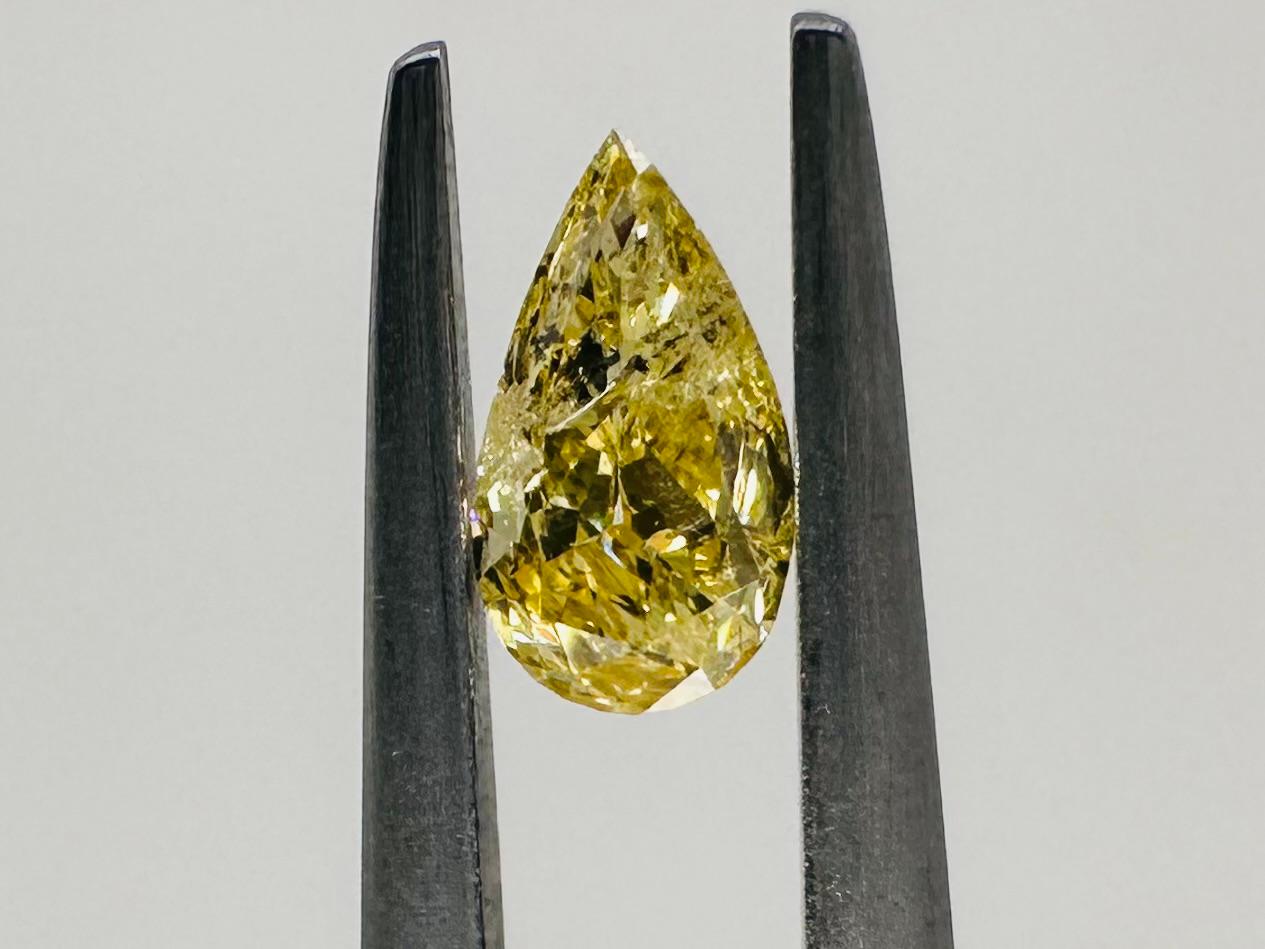 DIAMANTE FANCY COLOR 0,34 CARATI COLORE GIALLO INTENSO - PUREZZA I2 - TAGLIO PERA - CERTIFICATO GEMMOLOGICO MAROZ DIAMONDS LTD MEMBRO ISRAEL DIAMOND EXCHANGE - NUMERO INCISO AL LASER NELLA CORONA - BB40301-1-LC