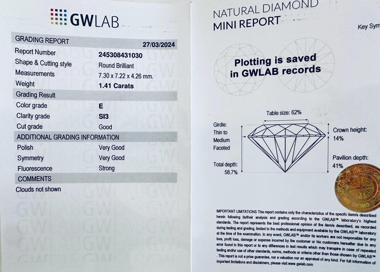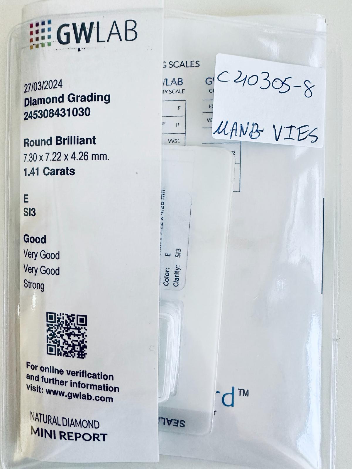 DIAMANTE NATURALE 1,41 CARATI COLORE E - PUREZZA SI1 - TAGLIO BRILLANTE - CERTIFICATO GW - C40305-8