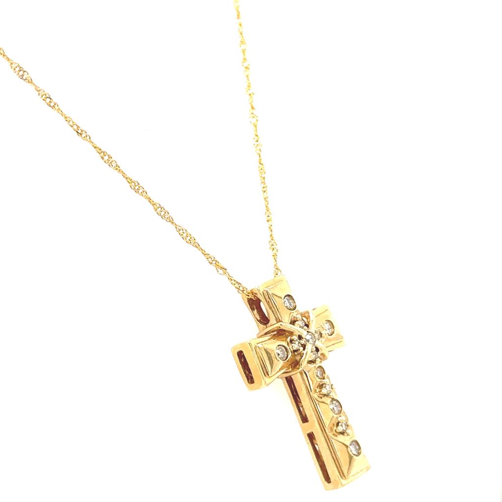 GIROCOLLO IN ORO GIALLO 14K A FORMA DI CROCE 4.78 GR CON DIAMANTI PER 0.20 CARATI - CERTIFICATO GEMMOLOGICO MAROZ DIAMONDS LTD MEMBRO ISRAEL DIAMOND EXCHANGE - PND30402